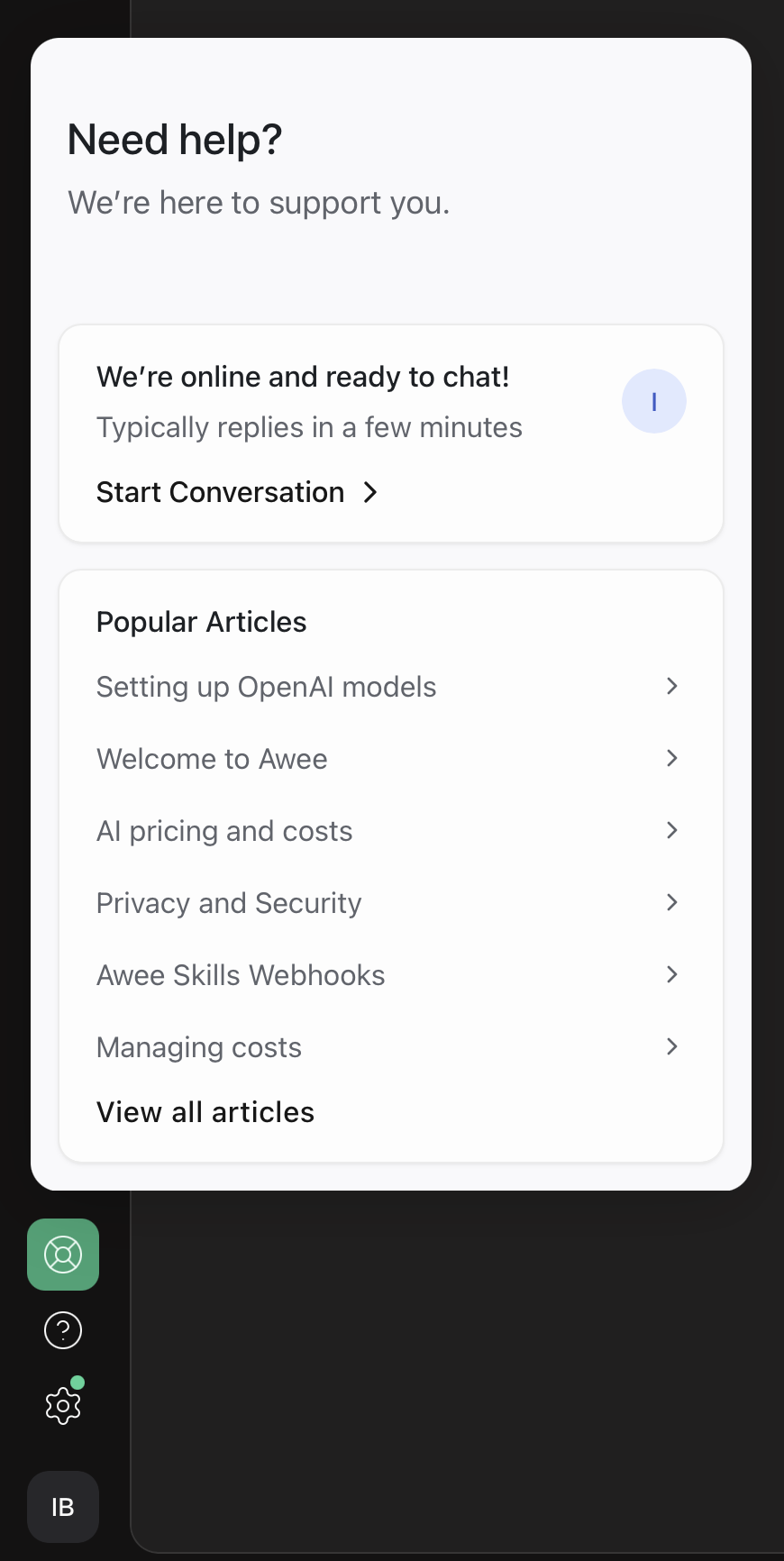 Logged-in users can get support and chat directly with the Awee team via the Desktop Application.